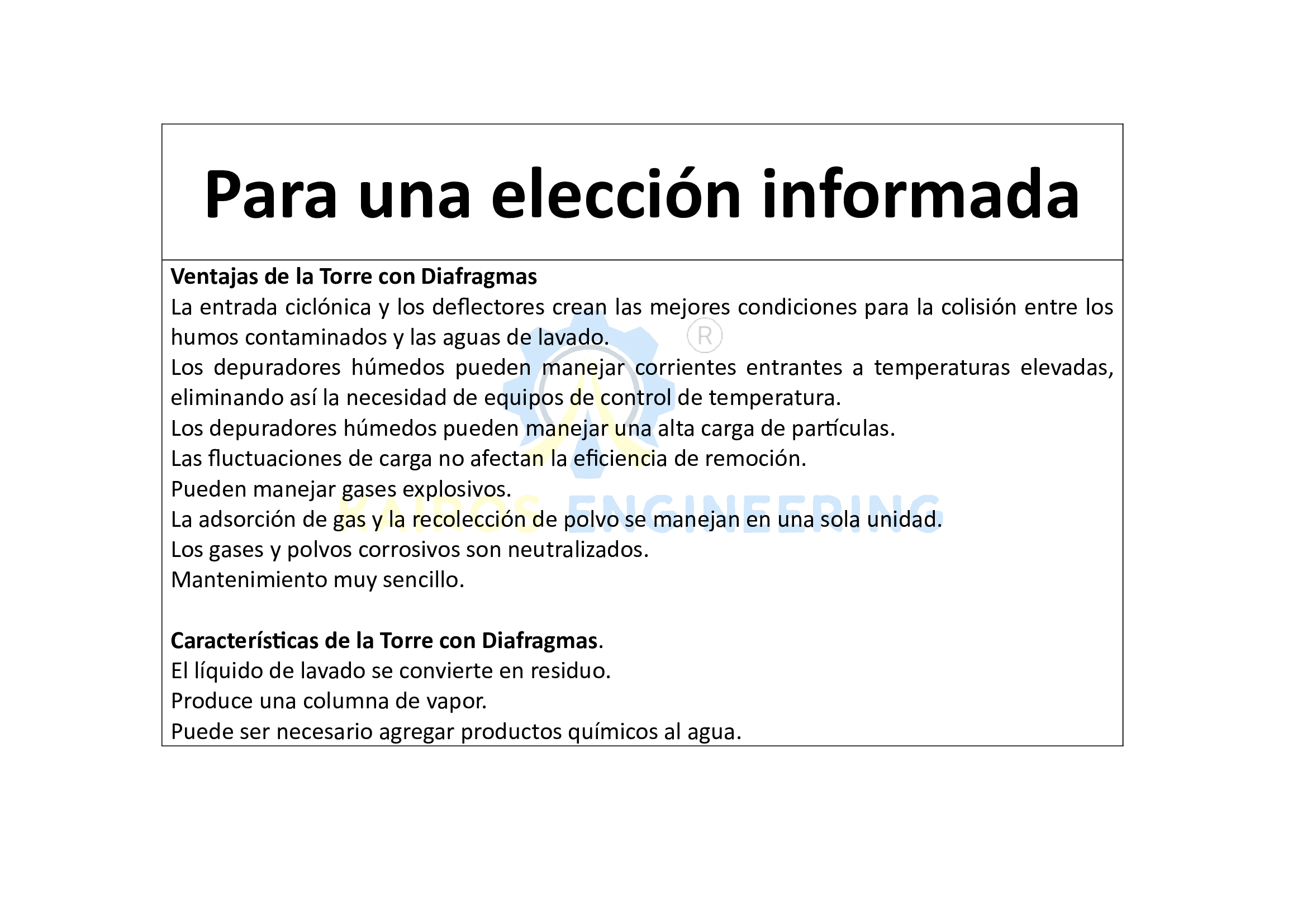 Elimination of fumes with diaphragms