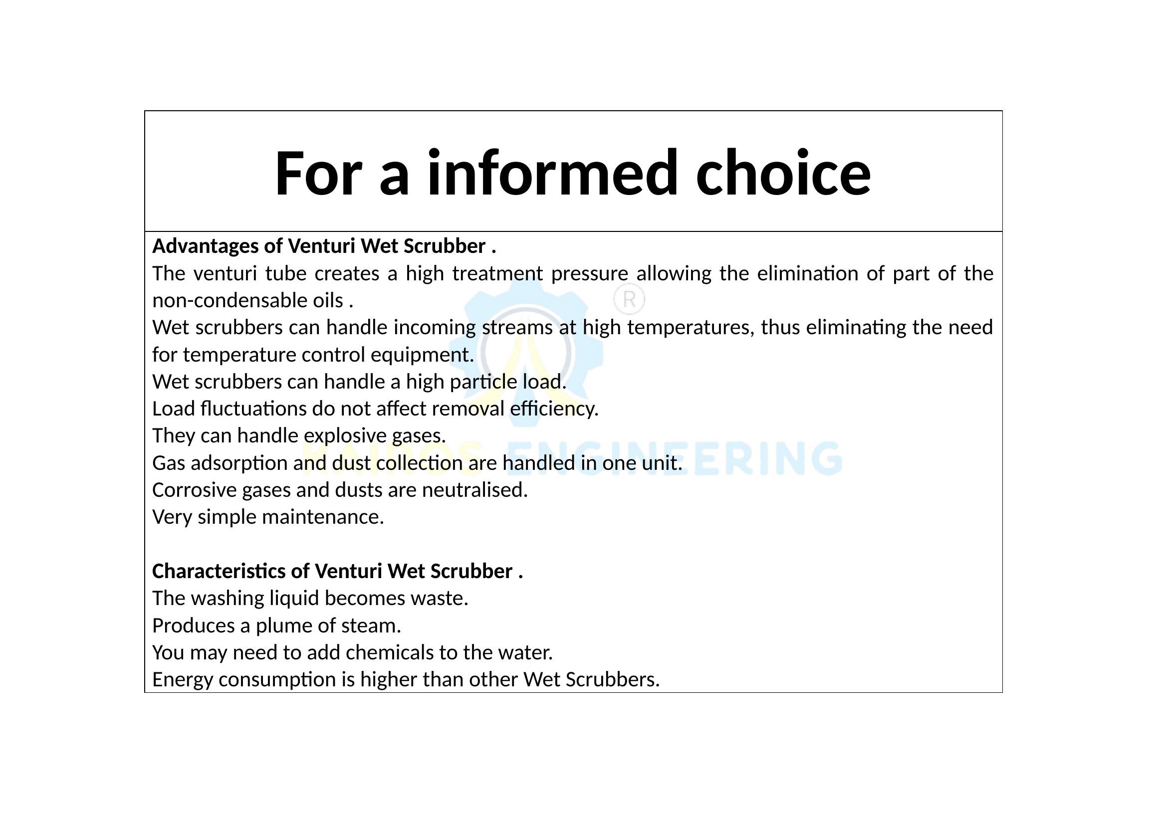 Venturi Scrubber is a device that generally consists of a centrifugal lung capable of separating the solid parts from the liquids and of a Venturi column that narrows in the middle section to vary the pressure and therefore allow the polluting solid particles to fall through the fumes. This type of Scrubber is used for the removal of dust present in corrosive and dangerous industrial gases. Venturi Scrubbers are used in the abatement of particulates and pollutants that come from coal, oil or wood boilers, the textile industry but also for emissions from the chemical industries, wood industries, paper mills, etc.